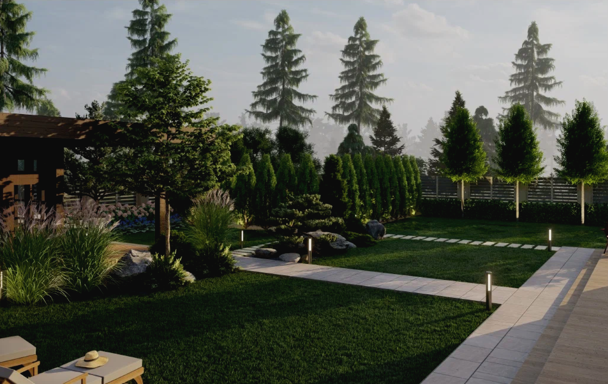 Разработка планов озеленения, создание дизайн-проекта участка, выбор растений и материалов для ландшафтного оформления, а также учет инженерных коммуникаций (дорожки, фонтаны, дренажные системы и т.д.).